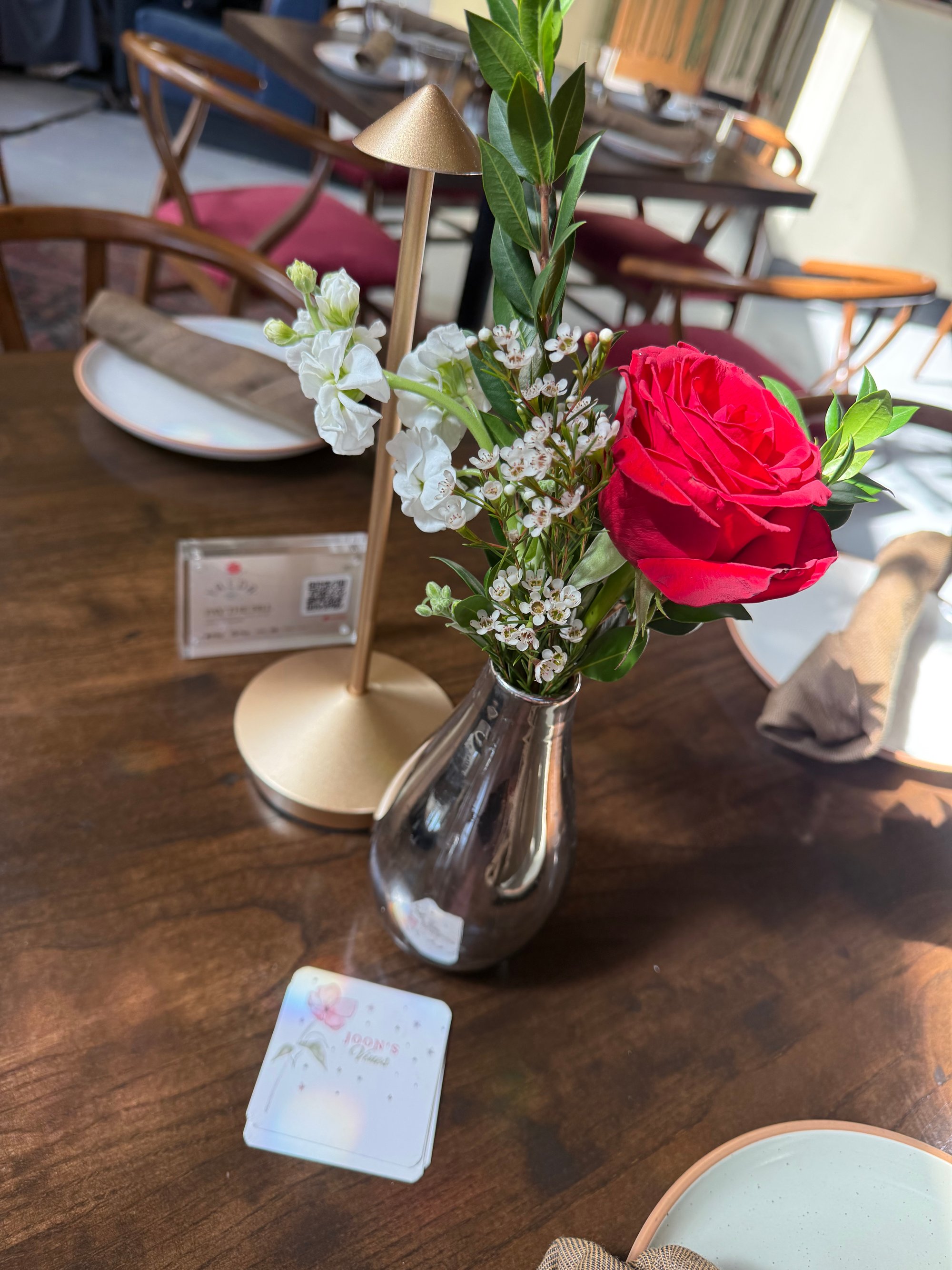 A tiny arrangement with a few beautiful blooms. The Bud Joon is a little moment of beauty perfect for something sweet but also beautiful when styled in multiples for events, showers and table settings.
