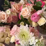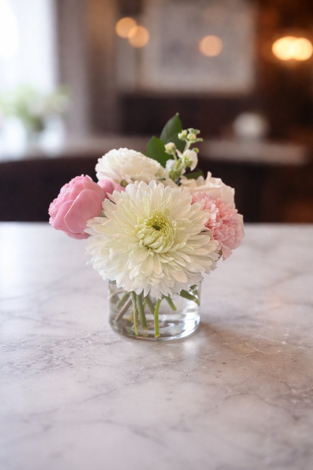 A sweet, smaller arrangement featuring a fresh mix of seasonal blooms with soft texture and a natural garden-style feel. The Petite Joon is perfect for a sweet gesture or even better styled in multiples for events, showers, and intimate table settings.