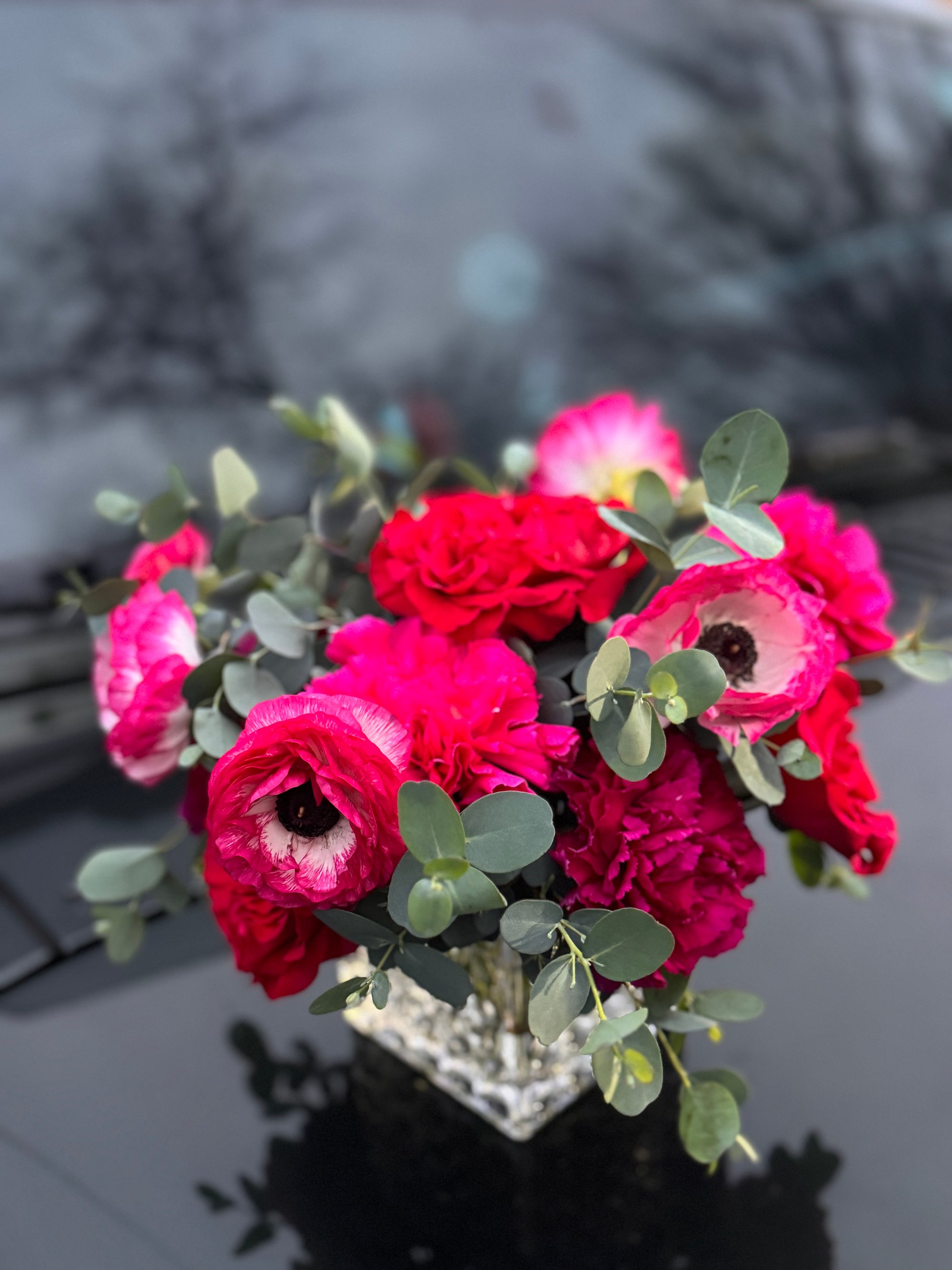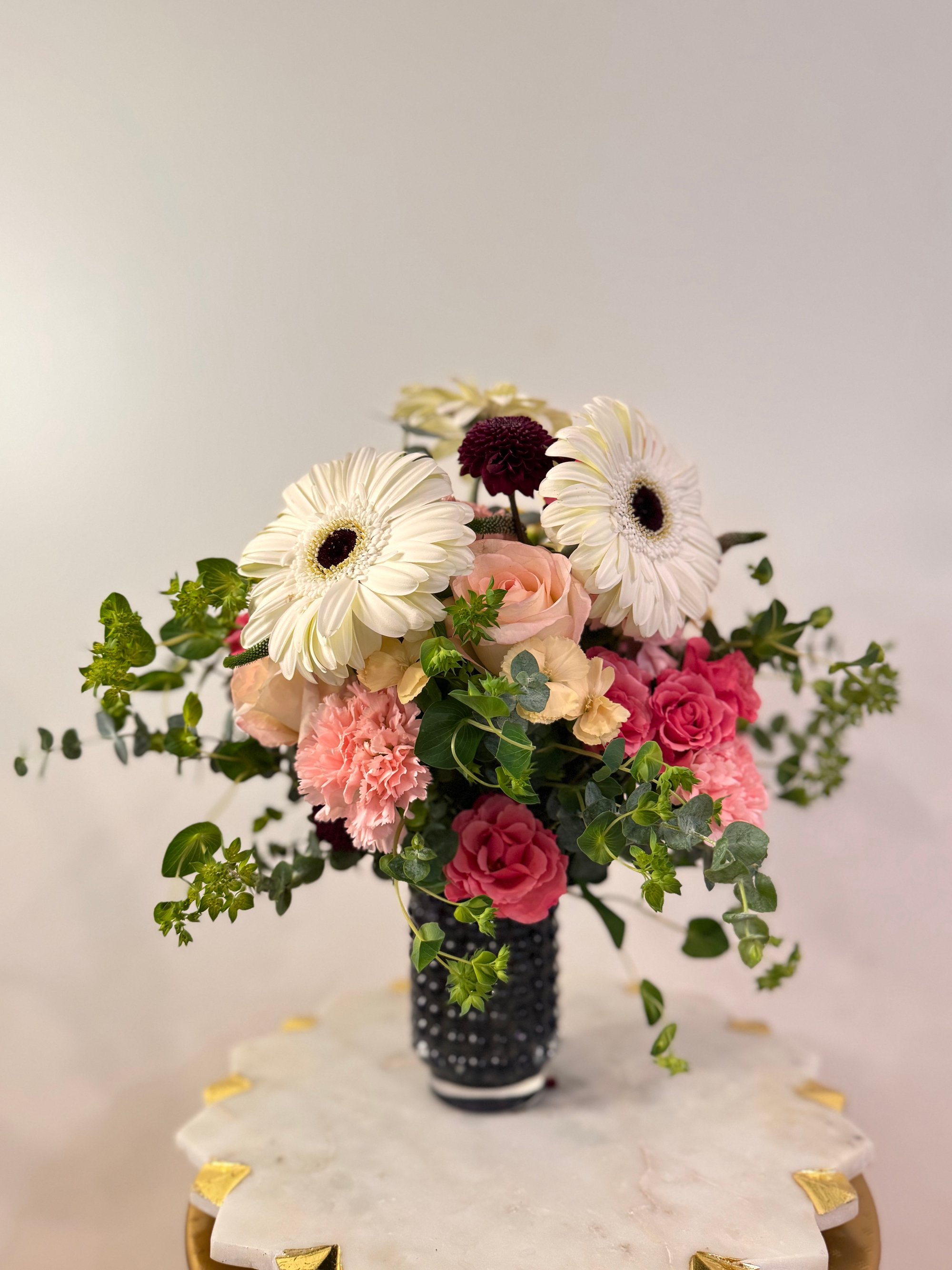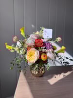A thoughtfully composed arrangement featuring a balanced mix of seasonal blooms with soft texture and natural movement. The Signature Joon is our go-to effortless, refined florals -- versatile, timeless and perfect for any occasion.